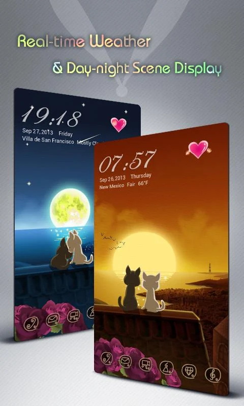 6. Pronostico del clima y condiciones actuales, animadas sobre la pantalla bloqueada;