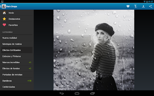 filtros de foto : Neon Glow , Fuego , Rompecabezas, HDR , Dibujo al lápiz , Petróleo y pintura impresionista , tiza y carbón de leña , y mucho más.