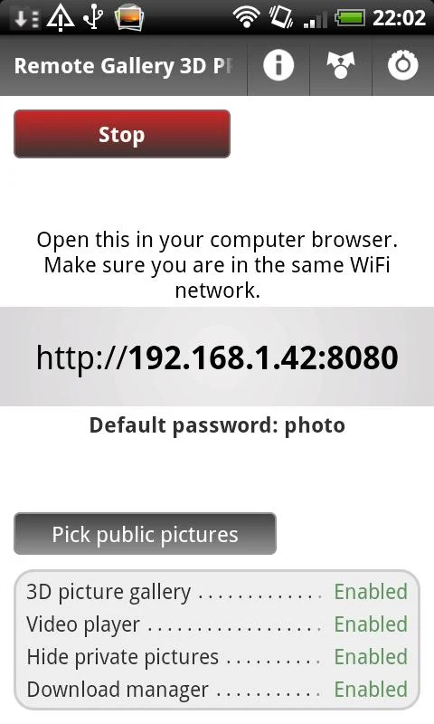 - Seguridad: elige tu password, para que otras personas en tu WiFi no puedan ver tus fotos.